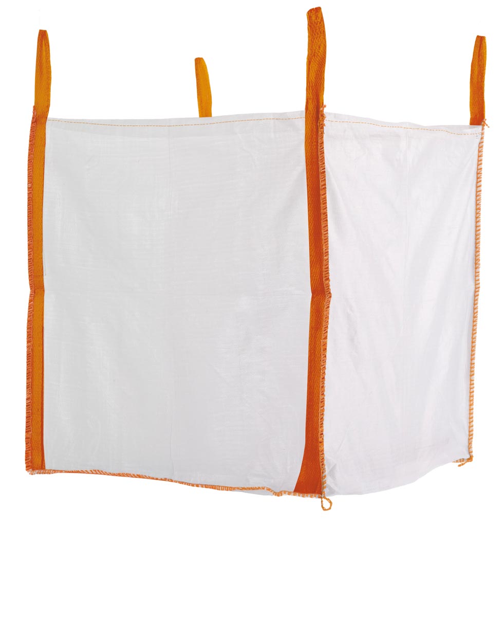 Der Big Bag ist oben offen, ohne Schürze, besitzt einen geschlossenen Boden und ist unbeschichtet – ideal für Schüttgüter, die nicht staubdicht verpackt werden müssen. Die 4 stabilen Hebeschlaufen ermöglichen ein einfaches Handling mit Stapler oder Kran.