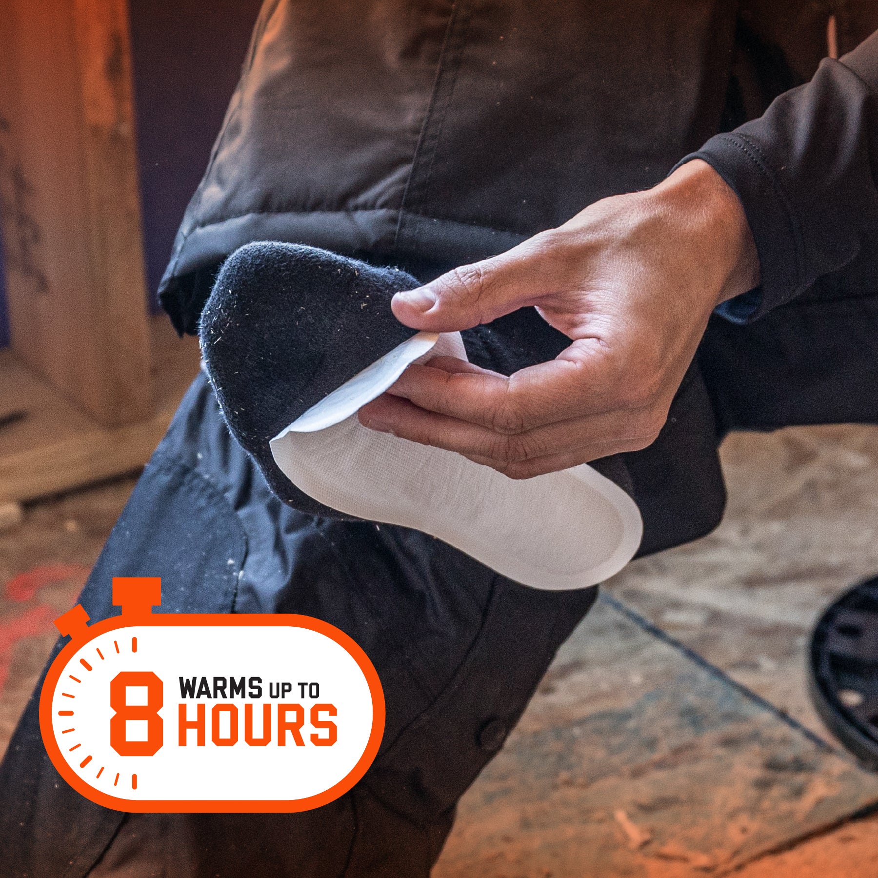 3. Auf die Socke kleben und Schuhe anziehen – Wärme hält bis zu 8 Stunden an.